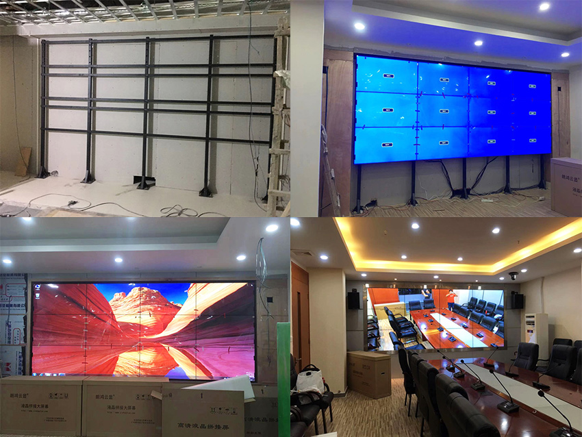 此次項目,采用信弘超窄邊3.5mm拼縫,46寸液晶拼接屏,落地式支架安裝,打造一套4×3拼接的大屏智能會議系統(tǒng)。