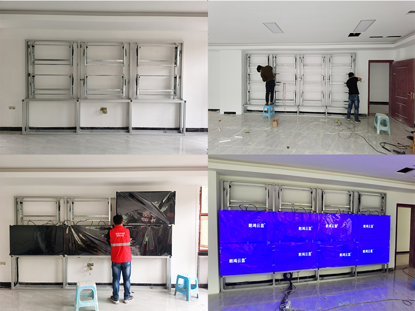 信弘工程師根據用戶的具體使用需求以及現場安裝環境,為其量身定制了一套落地式前維護安裝,超清數據化拼接大屏,為了融合現場環境,墻面與屏體形成一體,采用3×4,12塊三星原裝1.7mm55寸液晶拼接屏和一套2×3,6塊三星原裝1.7mm55寸液晶拼接屏來搭建,為用戶展示實時水庫數據。