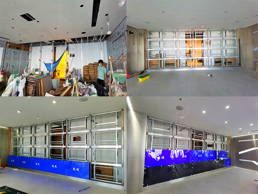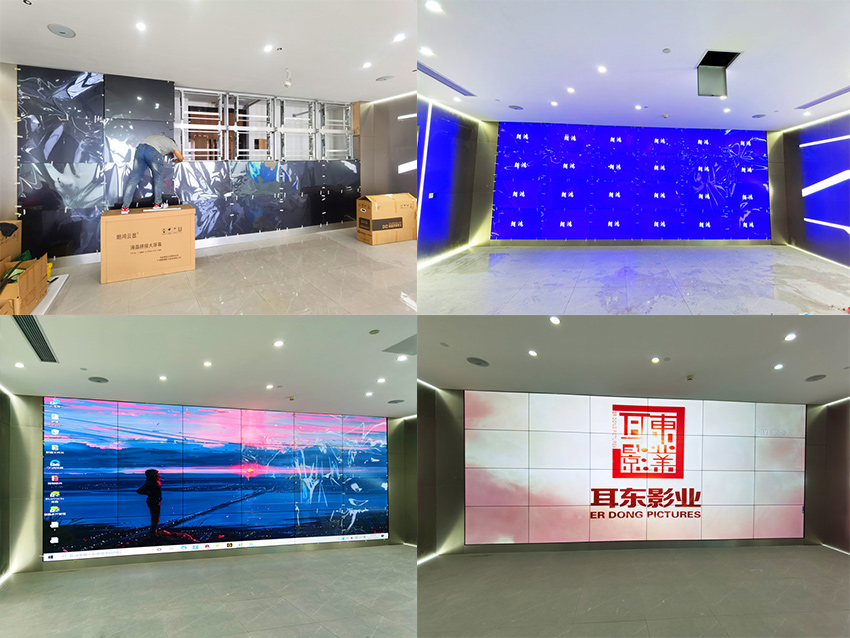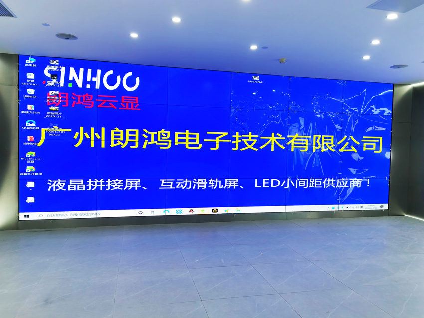 此項目由4×6的55寸1.7mm拼接屏在廣州天河區某公司展廳投入使用,顯示效果超過客戶預期。該用戶在CBD甲級寫字樓辦公,采用24塊1.7mm拼縫的拼接屏。